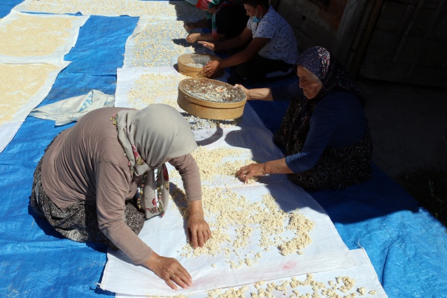 Hazırlıklar esnasında sofraların vazgeçilmezi tarhananın incelikleri anlatıldı...
