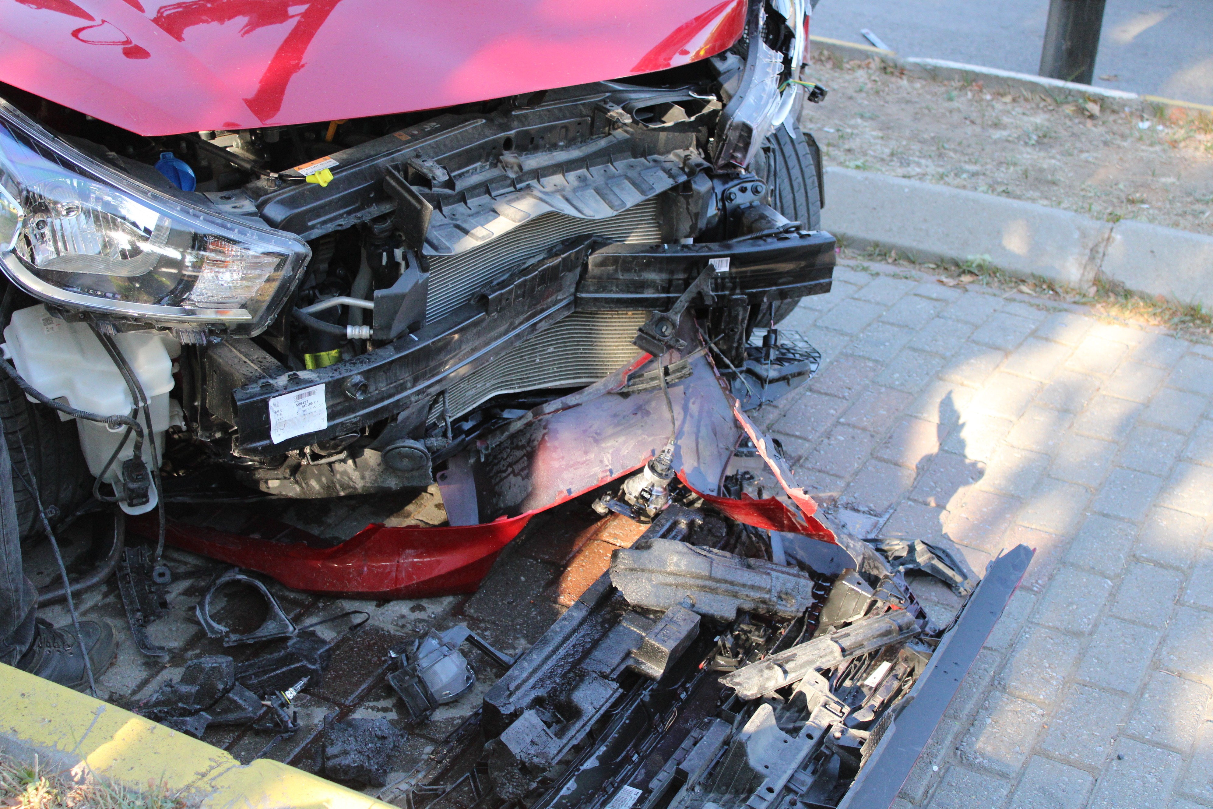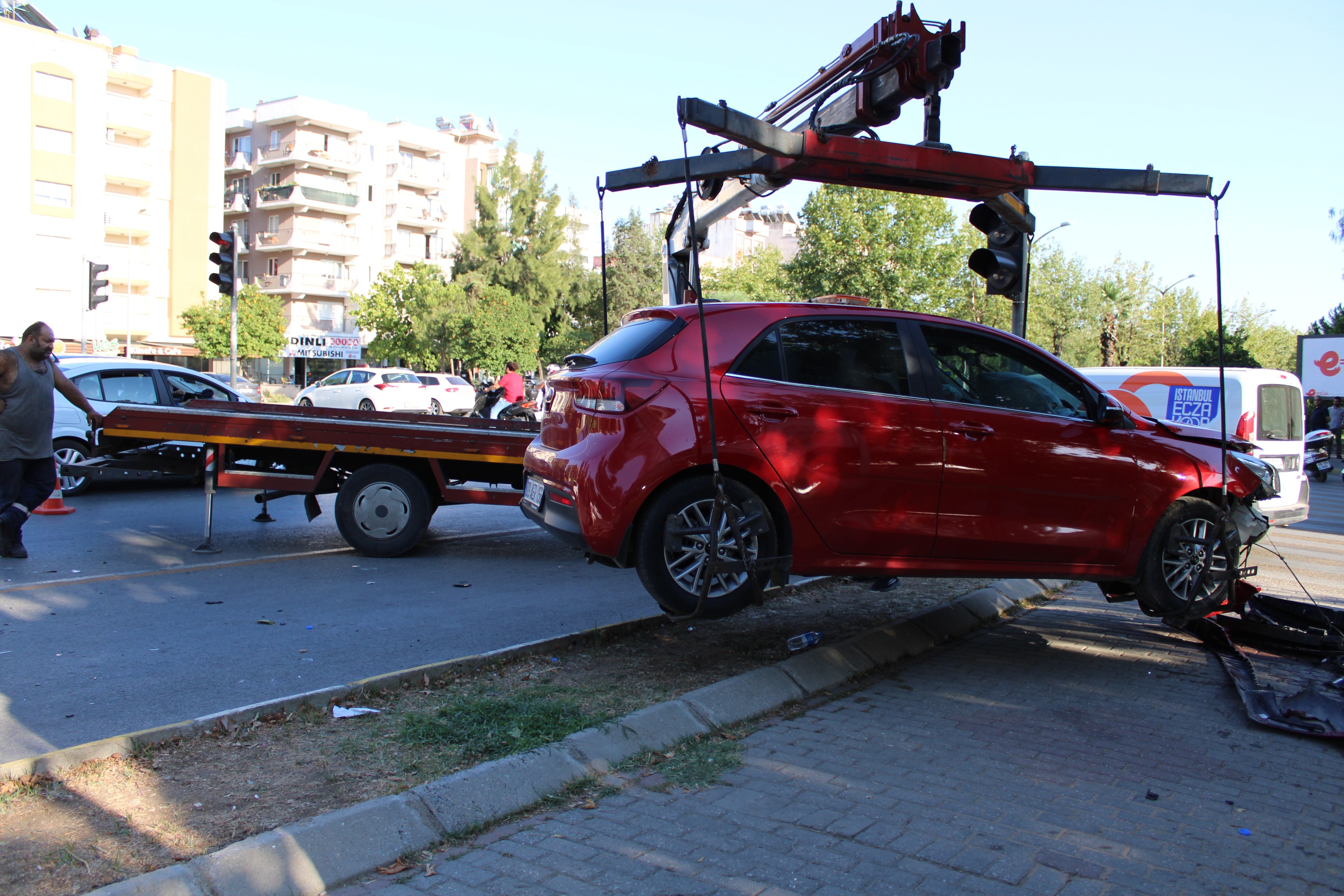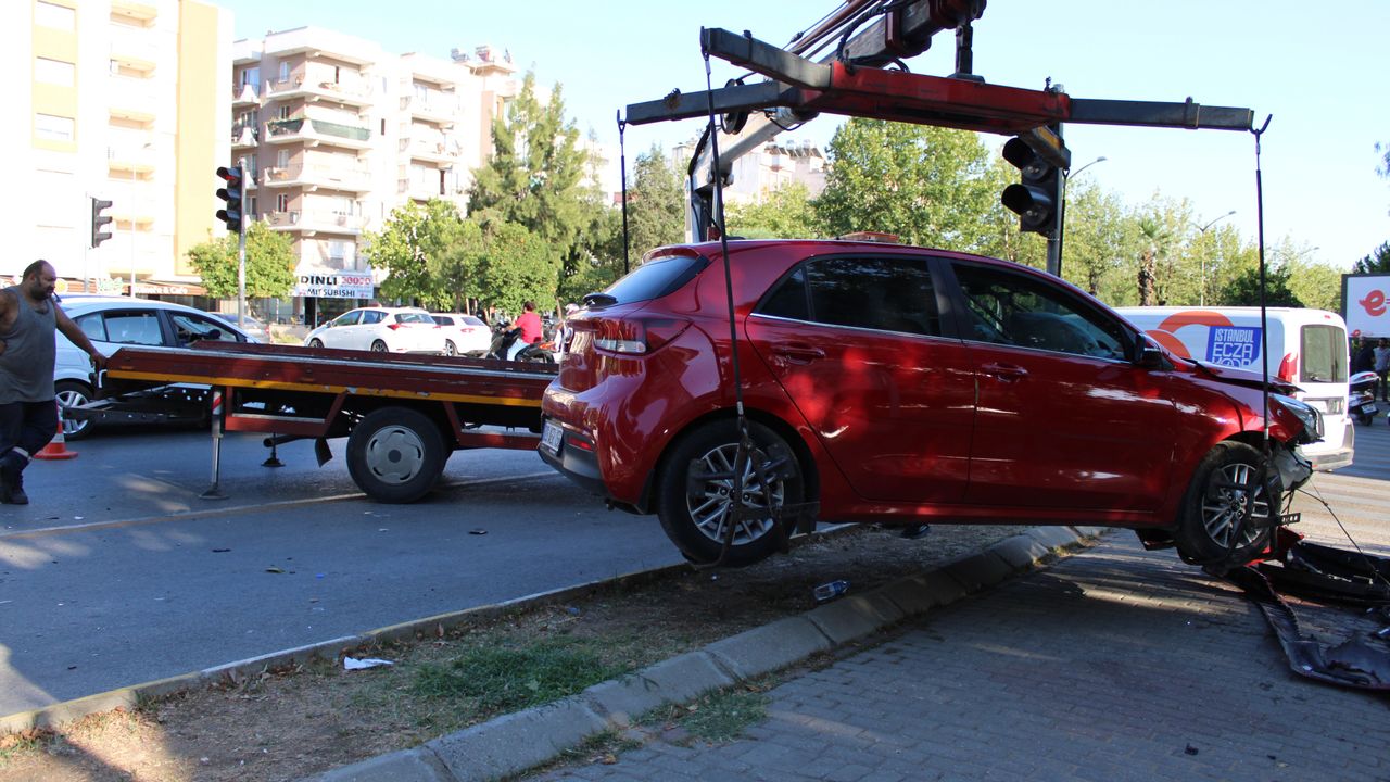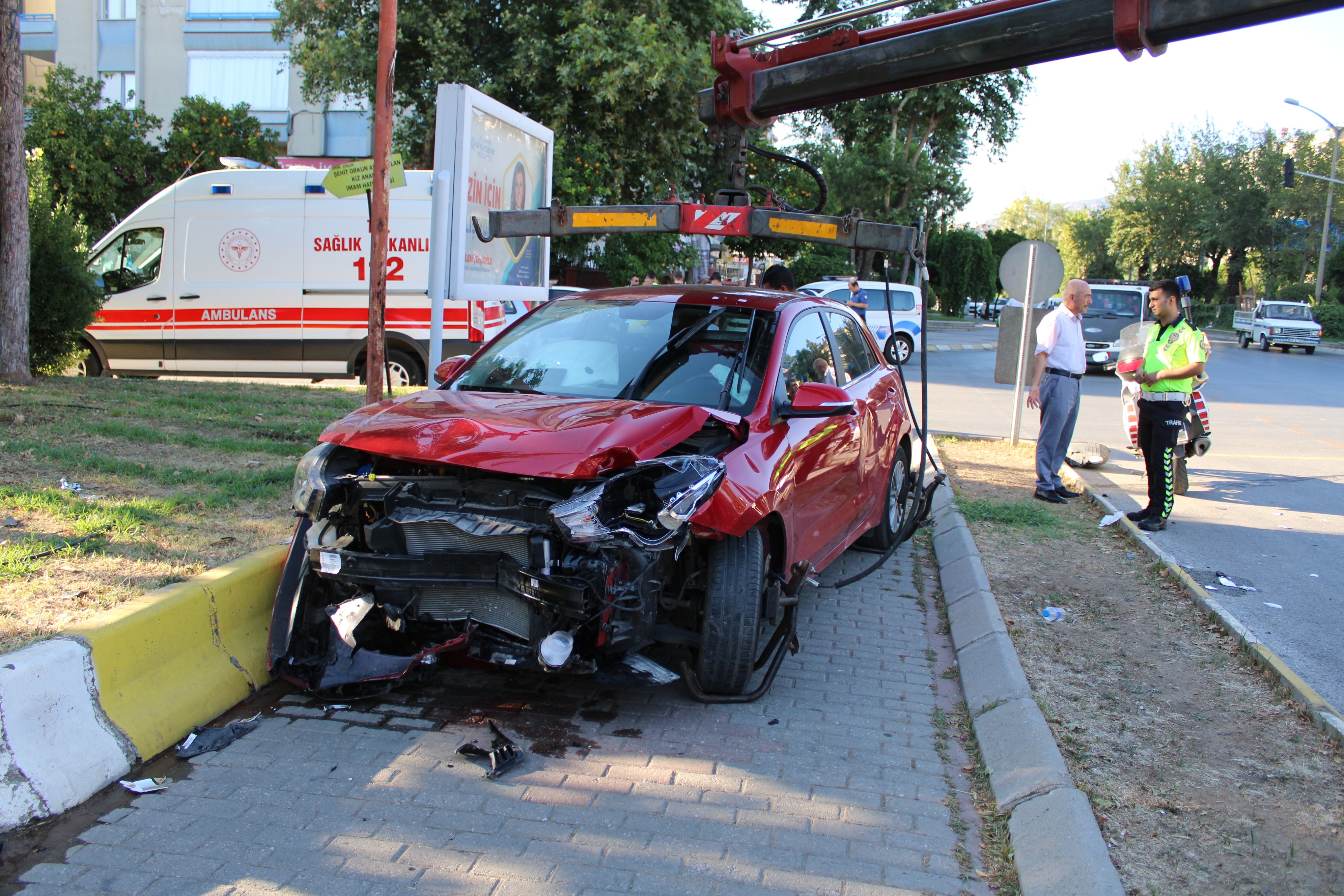 Çarpmanın etkisi ile yaya geçidini aşan otomobil, refüje çarparak durabildi.