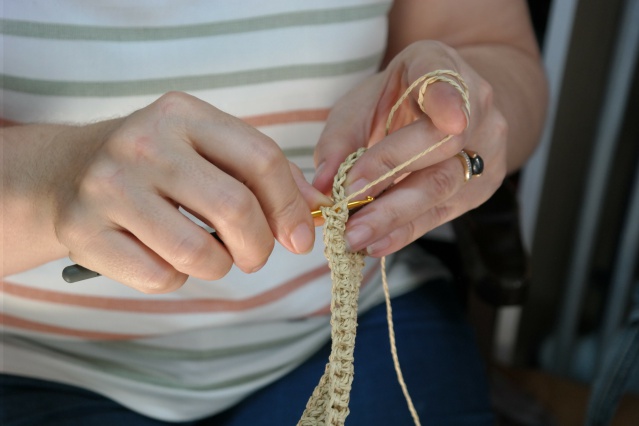 “Örmeyi, üretmeyi çok seviyorum ama gerçekten kâğıt ip ile örmek çok zor. Sert bir ip olduğu için elleri kesiyor, yara oluyor, nasırlaşıyor. Ben de ellerime bantlar sarıyorum ama yine de yapmaya çalışıyorum. Yapması yaklaşık bir hafta sürüyor.