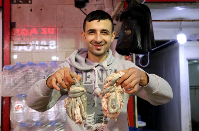 “Kokoreç fiyatları 20 gün önce arttı. Bunun da nedeni Türkiye’nin yurt dışına ihracat yapması ve mal olmaması. Yüzde 50 zam yapıldı. 100 liraya satılan 1 şiş yani 3,5 kilogram kokoreç şuan 150 lira. Şırdan da 7,5 liradan 12,5 liraya çıktı. Elimizde yeterince mal olmaması fiyatları arttırdı. Şırdan, mumbar, kokoreç kalmadı elimizde. Karaborsaya düştü. Esnaflarımız düşünüyor nasıl çıkacağız işin içinden diye. Devlet büyüklerimize sesleniyorum. Biran evvel ihracatları durdurmalarını istiyoruz. Yoksa et fiyatları 100 lirayı bulur. Mal bulunmadığı için karaborsaya düştü. Fiyatların önüne geçilmesini istiyoruz.”