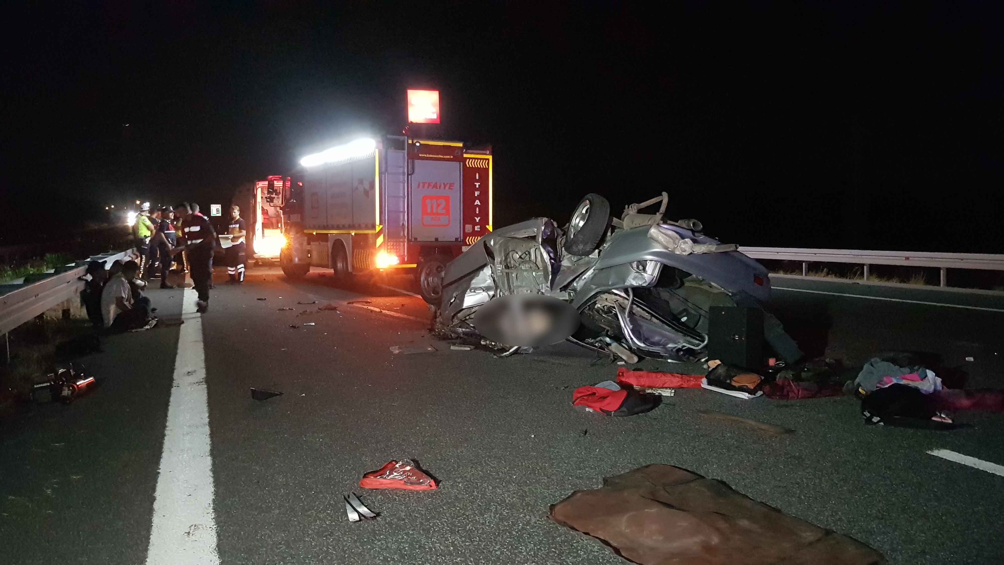 İstanbul-İzmir Otoyolu'nda otomobilin bariyerlere çarpması sonucu 3 kişi öldü, 2 kişi de yaralandı.