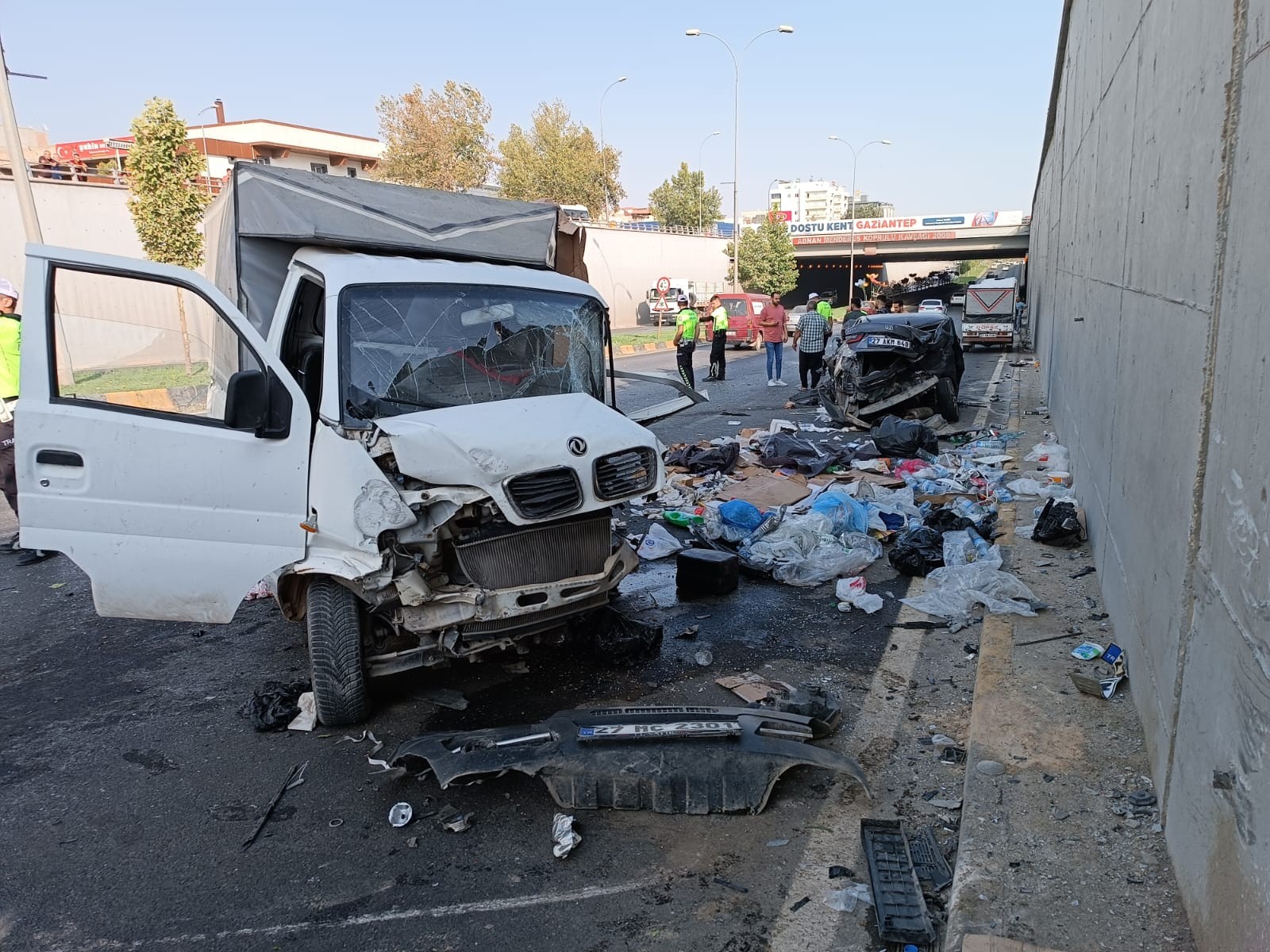 Önce karşı yönden gelen Ali Çoban idaresindeki 27 S 3764 plakalı işçi servisine, ardından da Vahit Hatim kontrolündeki 27 MC 2301 plakalı kamyonete çarpan otomobil karayolunu savaş alanına çevirdi.