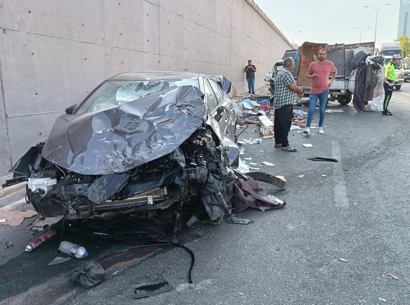 Toplam 3 kişinin yaralandığı feci kaza sonrası ortalık savaş alanına dönerken otomobil sürücüsü araç içerisinde sıkıştı. Kaza sonrası çevredeki vatandaşların ihbarı ile olay yerine çok sayıda sağlık, polis ve itfaiye ekibi sevk edildi.