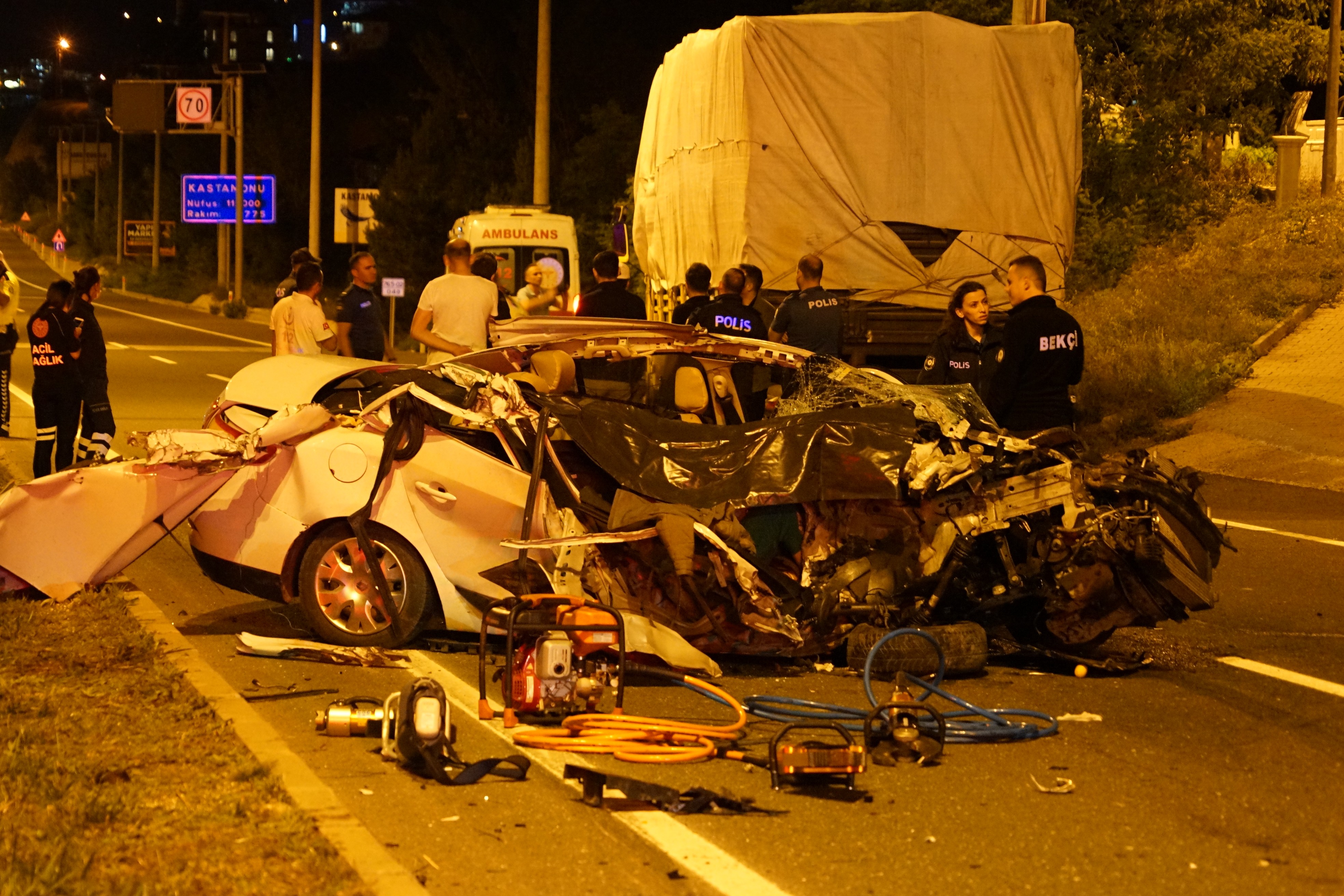 Kastamonu’da önünde seyreden kamyona çarpan otomobil paramparça oldu. Feci kazada otomobilde bulunan 1 kişi öldü, 2 kişi yaralandı.