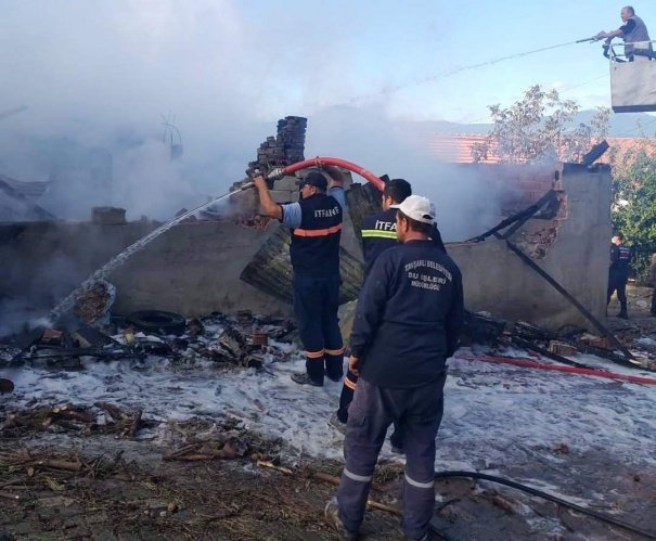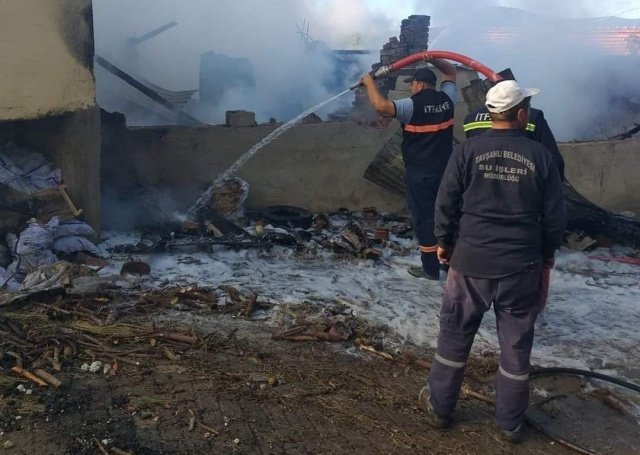 Günlüce köyünde Mehmet Mutlu’ya ait samanlık ve ahırda henüz belirlenemeyen bir nedenle yangın çıktı.