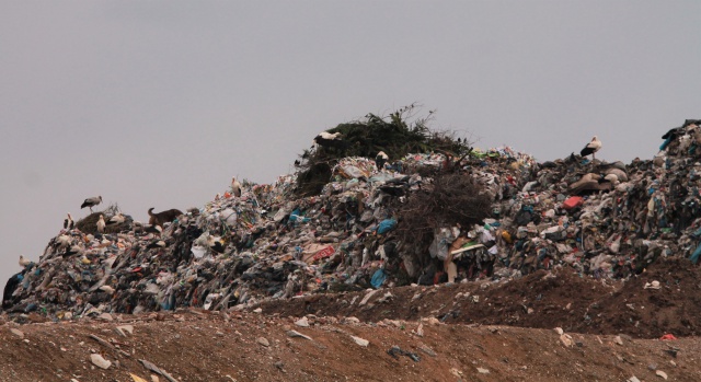 Göç yolundaki leylekler Eskişehir-Seyitgazi yolu üzerinde bulunan bir çöplükte mola vererek karınlarını doyurmaya çalışıyor.