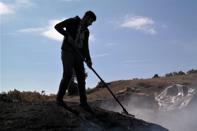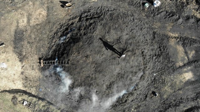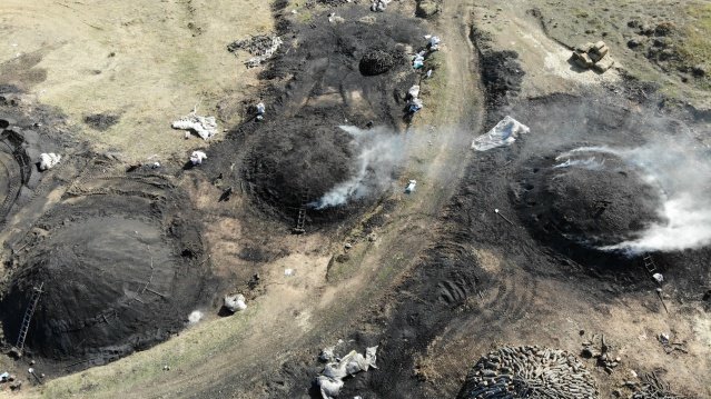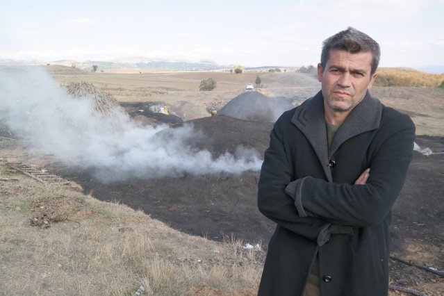 Eskişehir’in Sarıcakaya ilçesine bağlı Beyyayla Mahallesi’ne Mardin’den gelen mevsimlik işçiler, meşe odunundan mangal kömürü üretimi yapıyor. Bin 400 rakımlı alanda yılın yaklaşık 8 ayı geçici çadırlarda yaşayan işçiler; ateş, duman ve kavurucu sıcağın altında gün boyu ekmek mücadelesi için çabalıyor. Sabahın erken saatlerinde traktör ile Orman Bölge Müdürlüğü’nün belirlediği alanlardan meşe odunlarını toplayan mevsimlik işçiler, günler süren mesai ile biriktirdikleri odunları piramit şeklinde diziyor. Sonrasında ise her tarafı toprak ve saman ile kaplanan odunlar, üst taraftan verilen ateş sayesinde 15-30 gün arasında içten içe yanıyor. Hazırladıkları ocak başında 24 saat nöbet tutan işçiler, yanmanın ardından soğutma çalışmaları yaparak mangal kömürünü hazır hale getiriyor.