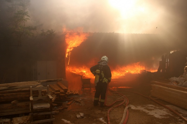 Hızla yayılan alevler tüm atölyeyi sardı.