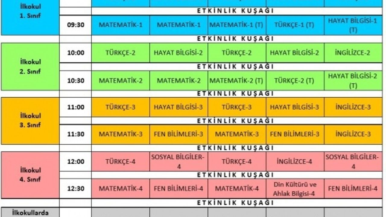 Milli Eğitim Bakanlığı, yeni tip Koronavirüs (Kovid-19) dolayısıyla eğitime verilen arada yapılacak uzaktan eğitimle ilgili haftalık ders programını paylaştı.