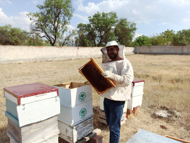 Grup sözcüsü Mehmet Emin Uslu; “Başkanımızın verdiği 10 arılı kovan desteği ile başladığımız bu çalışmada önemli bir noktaya geldik. Şuan itibariyle 30 kovanımız var. Tabii başkanımızın bize sağladığı desteği, geri iade edip başka köylerde de bu üretimin başlatmasını rica edeceğiz. Nisan ayında başladığımız bu yolda şuan verimden gayet memnununuz. Bu yıl bal sektöründe verim durgunken, bu durum bizi etkilemedi çok şükür. Kovan başına 20 kilo, hatta 30 kilo bal alan arkadaşımız var. Yani ortalama kovan başına 25 kilo balımız var. Şuan da çıkardığımız balın neredeyse hepsini sattık. Mesela bir arkadaşımız 500 liralık polen sattı, normalde bir kovandan nu kadar polen çıkmaz” dedi.