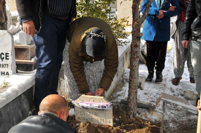 Mezarlıkta baba Erdi Karakiraz’ın 4 aylıkken vefat eden kardeşi Eren Karakiraz’ın mezarının üzerine defnedilen küçük Ayşenur’un mezar taşına akrabaları tarafından başörtüsü bağlandı. Cenaze defnedilirken gözyaşlarına boğulan Erdi Karakiraz, duanın ardından kızının mezarına kapanarak, “Kızım sen kalk oradan ben yatayım” diyerek gözyaşlarını tutamadı. Baba Karakiraz yakınları tarafından güçlükle mezardan kaldırıldı.