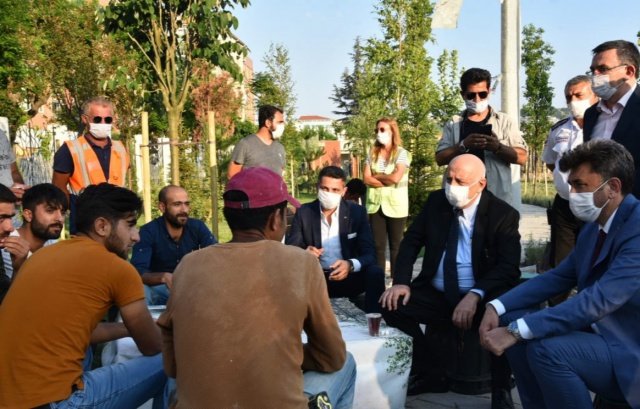 Nabi Avcı, Eskişehir Millet Bahçesi'nde çalışan işçilerle de çay içip sohbet etti.