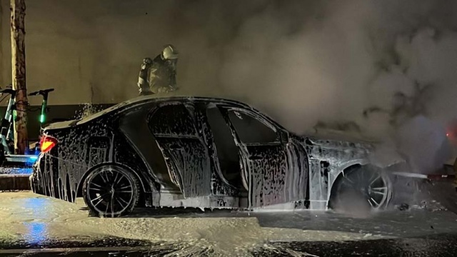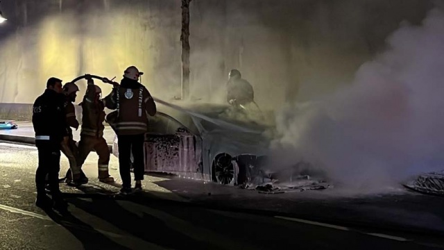 Çarpmanın etkisiyle kaldırıma da çıkan lüks otomobil henüz belirlenemeyen bir sebeple yanmaya başladı. Çevredekilerin ihbarı üzerine olay yerine polis, itfaiye ve sağlık ekipleri sevk edildi. Polis ekipleri, Çırağan Caddesini tedbir amaçlı trafiğe kapatırken itfaiye ekipleri alev alev yanan otomobile müdahale etti.