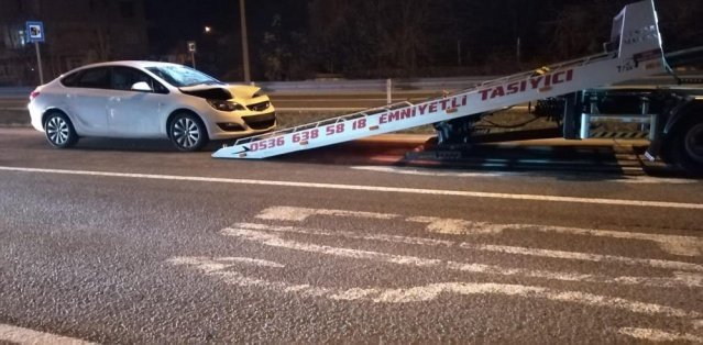 Kaza nedeniyle trafik bir süre tek şeritten sürdürülürken, polis ekipleri olayla ilgili inceleme başlattı.