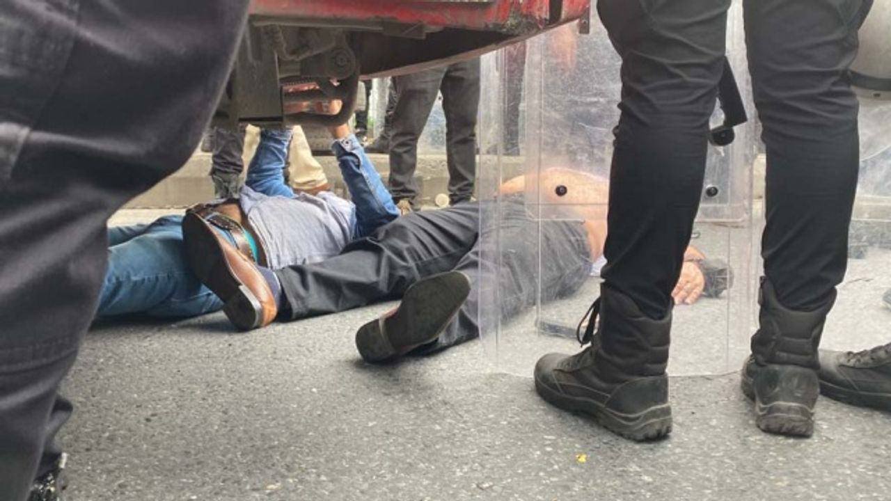 Bazı vatandaşlar ise araçların altına yatarak yolu trafiğe kapatmaya çalıştı. Bu sırada fenalaşan bir vatandaşa, ambulansla hastaneye kaldırıldı.