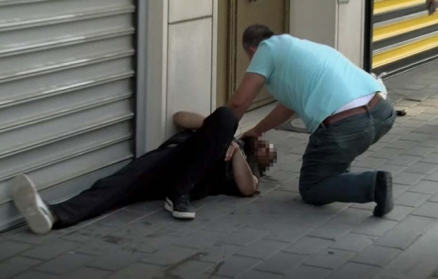 Kadının çığlıkları üzerine vatandaşlar polisi arayarak ihbarda bulundu. Olay yerine kısa sürede çok sayıda resmi ve sivil polis sevk edildi.