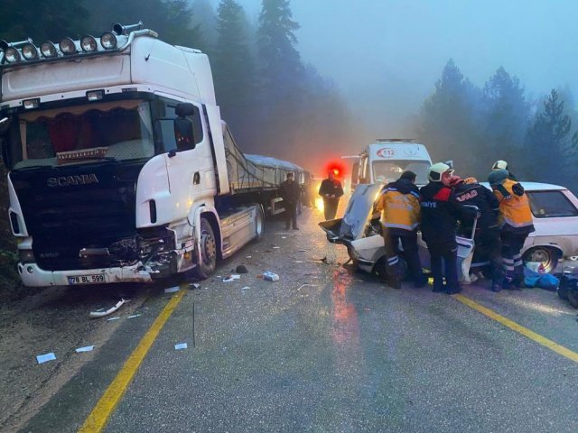 Edinilen bilgiye göre kaza, Karabük - Bartın karayolu Ahmet Usta mevkiinde meydana geldi. Bartın istikametine seyreden Seddar K. (57) idaresindeki 06 BAG 41 plakalı otomobil, yağmur nedeniyle kayganlaşan yolda sürücüsünün direksiyon hakimiyetini kaybetmesi sonucu karşı istikametten gelen Nurettin O. idaresindeki 78 BL 599 plakalı kütük yüklü tır ile kafa kafaya çarpıştı.