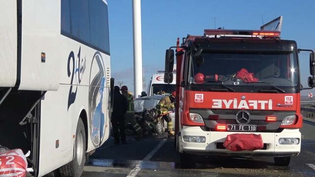 Kırıkkale'de otomobilin emniyet şeridinde park halinde olan otobüse arkadan çarpması neticesinde meydana gelen kazada, 1 kişi hayatını kaybederken, 2 kişi de ağır yaralandı.