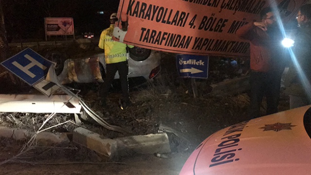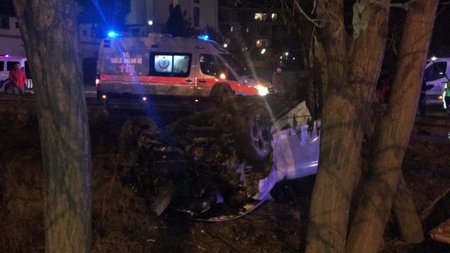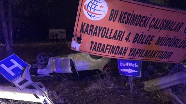 26 BB 628 plakalı otomobil, sürücünün direksiyon hakimiyetini kaybetmesi sonucu yol kenarında bulunan demir korkuluklara çarptıktan sonra takla attı