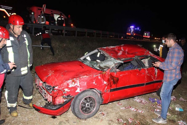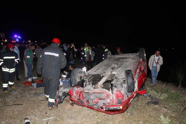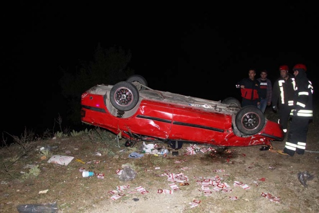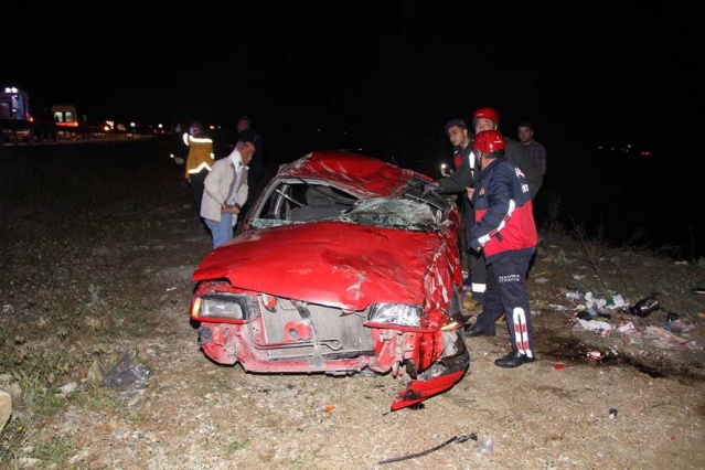 Karayolunda savrulan otomobil, takla atıp yolun sağ tarafında bulunan şarampole devrildi.