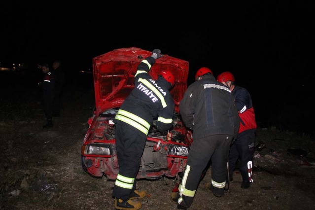 Kazanın şiddetiyle ters dönen otomobilde bulunan yolcular, sıkıştıkları yerden kendi imkanları ile dışarı çıktı.