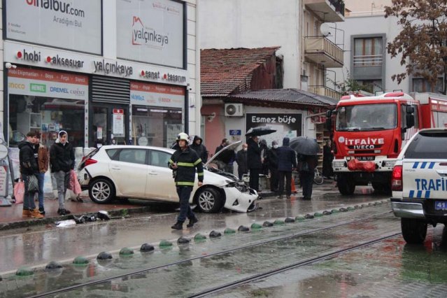 Kazada araçlar elektrik panosuna çarparak durabildi.