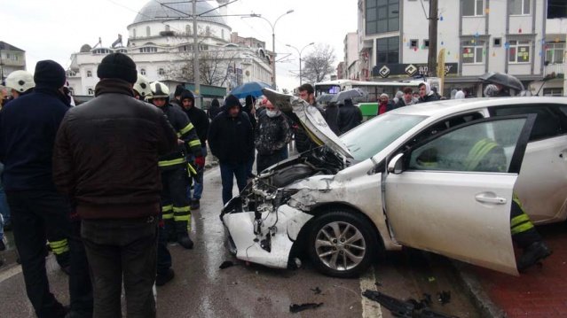 Çarpışmanın etkisi ile otomobilde bulunan kadın sürücü E.M.T., otobüs şoförü İ.S. ile otobüste bulunan F.T. ve M.D. yaralandı.