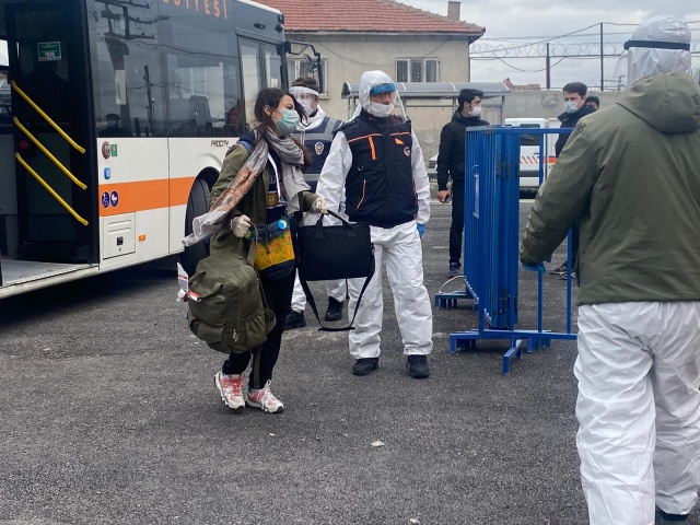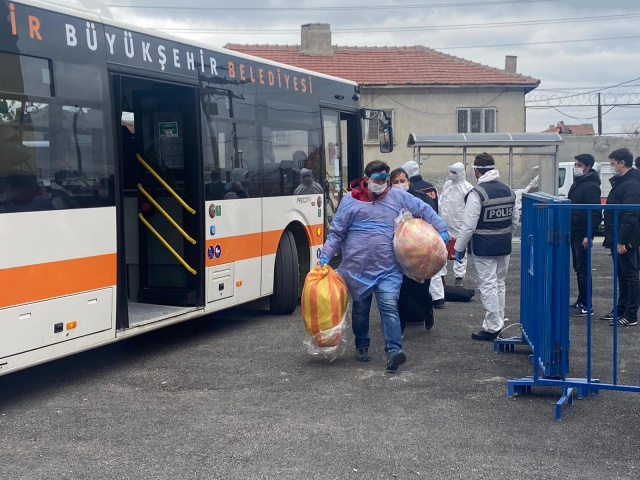 Burada korona virüs tedbirleri kapsamında ilk kontrolleri yapılan 133 vatandaş, otobüslerle Doğan Aslan Bey Öğrenci Yurdu'na getirildi.
