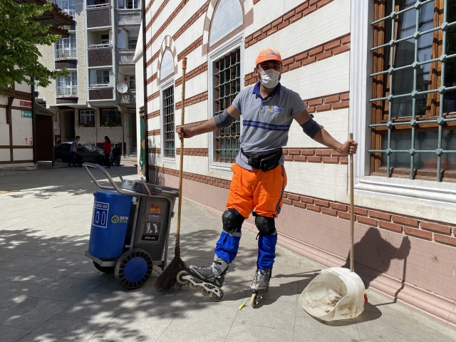 Zeytinburnu’ndaki patenli temizlik işçisi Alper Gürsoy, ilçede ilgi odağı oldu. Patenle temizlik görevini daha hızlı yerine getirdiğini belirten Gürsoy, insanların patenle çalıştığını gördüklerinde kendisiyle fotoğraf çektirmek istediğini ifade etti.