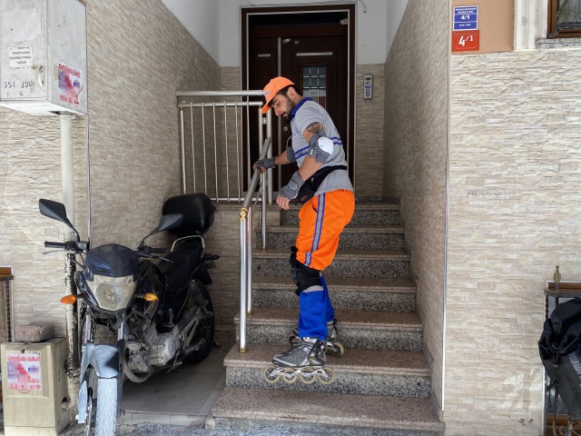 Paten sürmekten keyif aldığını söyleyen temizlik işçisi Alper Gürsoy, “Yaklaşık üç yıldır Zeytinburnu Belediyesi’nde temizlik görevlisi olarak çalışıyorum. Paten sürmeyi öğrenmem biraz zaman aldı. 1 yıldır paten sürüyorum, 3-4 aydır da patenle işimi yapıyorum. Öncelikli olarak trafikte patenle rahat ediyorum.