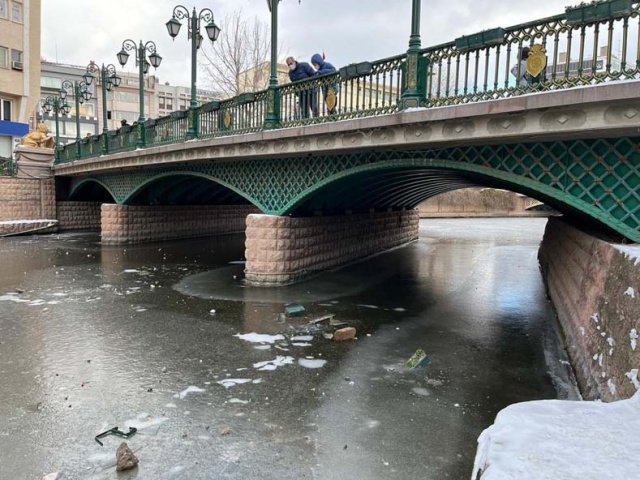 Birçok vatandaş için görülmeye değer görüntü oluşturan Porsuk Çayı, bazı duyarsız şahısların çeşitli objeler atarak buz tabakasını kırmayı denemesiyle kirlendi.