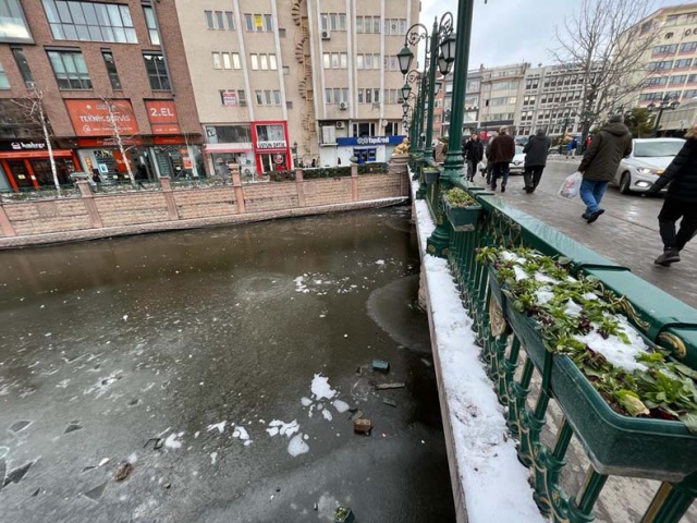 Tüm bunların yanında kimliği belirsiz şahıs ya da şahıslar, Şair Fuzuli Caddesi üzerinde bulunan köprüde süs amaçlı asılı duran saksıları atarak Porsuk Çayı’nın üzerindeki buz tabakasını ölçmeye, kırmaya çalıştı.