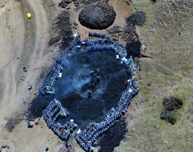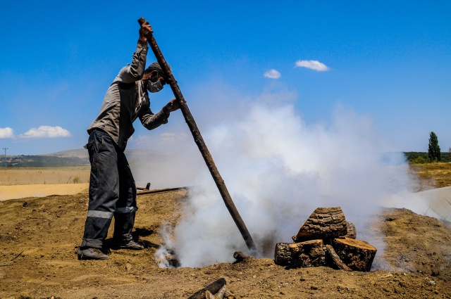 Önce toplanan odun parçaları günlerce süren çalışmanın ardından tepe şeklinde diziliyor. Daha sonra üzeri saman ve toprakla kaplanan odun tepeleri mangal kömürü elde edilmek için tam 1 ay boyunca içten yakılıyor. Ormanlık alanda yapılan işlemler sırasında yangın çıkmaması için de gece-gündüz nöbet tutuluyor. Kömürleri parçalayıp çuvallara dizen işçiler, yoğun duman ve sıcaklık altında günde 13-14 saat çalışıyor.