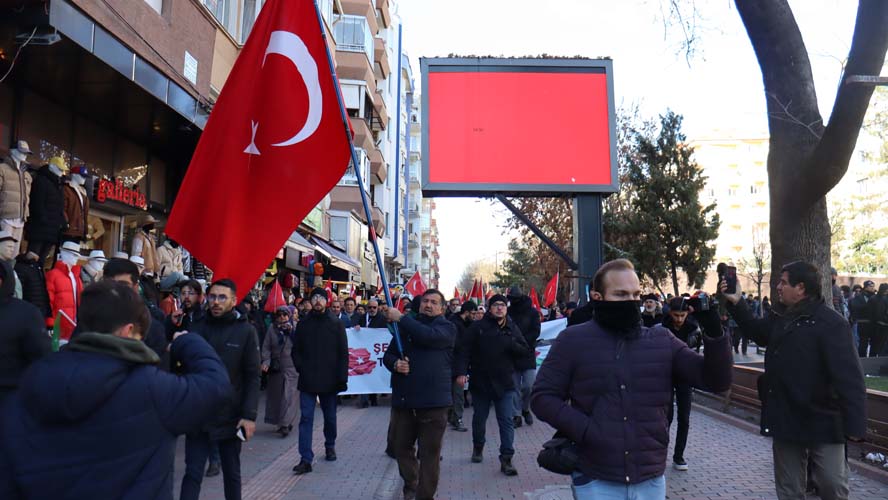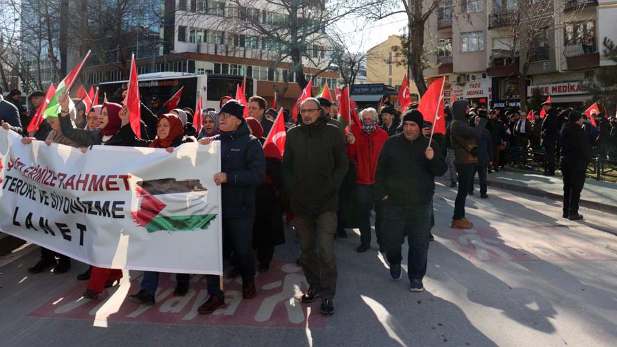 Saat 13.45'te Çarşı Camii'nde yürüyüşe başlayan vatandaşlar, Hamamyolu Caddesi'nden geçerek Alaattin Camii'ne kadar yürüyerek, sonra basın açıklaması yaptı.