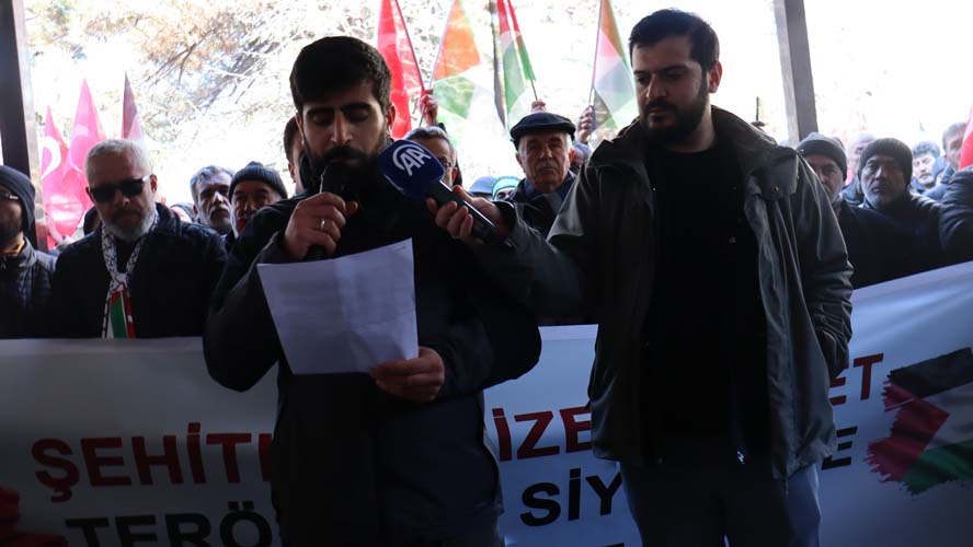 "Basın açıklamamızın başında Irak'ın kuzeyindeki Pençe Kilit Harekâtı bölgesinde teröristlerle çıkan çatışmada şehit olan askerlerimize Allah'tan rahmet diliyor, yaralı askerlerimize şifalar temenni ediyoruz. Buradan terörü bir kere daha lanetliyoruz. Memleketimize kasteden emperyalistlerin maşası olan hainler kirli emellerine asla ulaşamayacaklar. Teröristlerin arkasındaki şer odaklarının tüm insanlık için bir tehdit olduğunu bir kere daha haykırıyoruz. Teröre, emperyalizme ve Gazze'deki işgale karşı tek ses olmak için bugün buradayız. Son bilgilere göre, Filistin'de 10 binden fazla çocuk, 7 binden fazla kadın olmak üzere toplamda 23 bini aşkın insan hayatını kaybetti. 60 binden fazla kişi yararlanırken, 8 bin kişi ise kayıp. İşgalci İsrail'in saldırıları sebebiyle ayrıca 69 bini tamamen yıkılmış olmak üzere 359 bin ev zarar gördü.