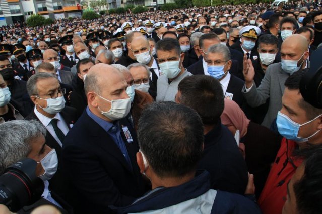 Aile yakınlarının acısını paylaşan Bakan Soylu, ”9 teröristi oraya gömdük, Allah bizi ona mahcup etmesin” derken, baba “O benim kahramanım” diye cevap verdi.
