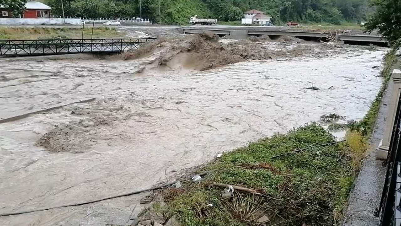 Kastamonu'nun İnebolu ilçesinde şiddetli yağışın etkisiyle taşan sel suları 2 köprüyü yıktı, bir mahallede ise evleri sel suları bastı.