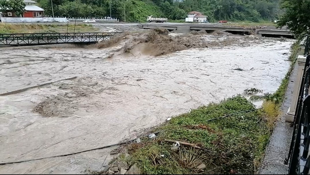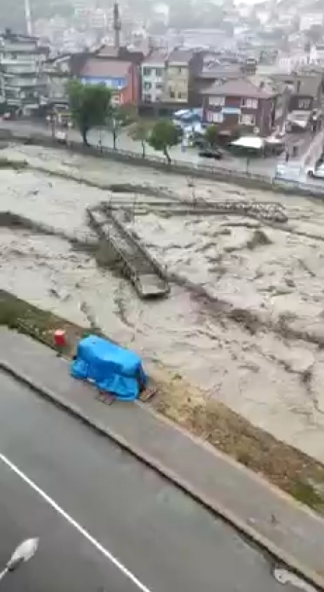 Yıkılan köprülerden bir tanesi sel sularının etkisiyle akıntıya kapılarak gözden kayboldu.