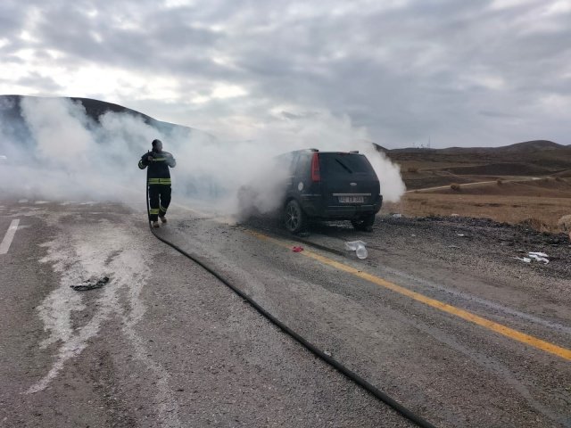 Giresun'dan Erzurum'un Horasan ilçesine düğüne gitmek için seyir halinde olan otomobil bilinmeyen bir sebepten dolayı Kop Dağında aniden alev aldı.