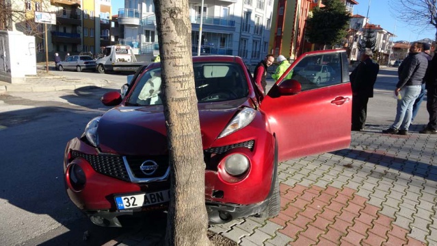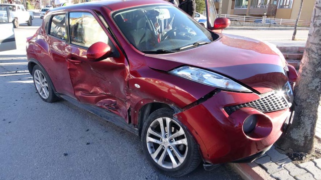 Çarpışmanın şiddetiyle Songül M. isimli şahsın kullandığı 32 ABN 048 plakalı cip savrulup kaldırımdaki ağaca çarparak durabildi.
