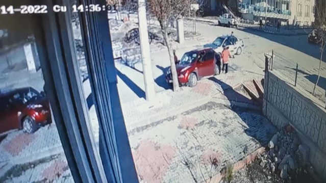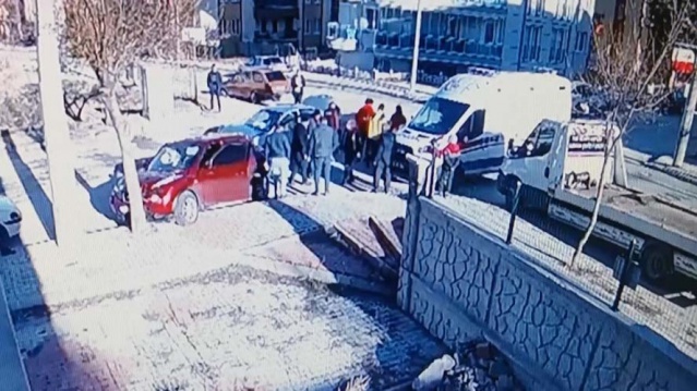 Kaza sonrası cipi kullanan kadın sürücü, aracından çocuğunu alıp kaldırıma oturdu. Şoka giren sürücü kızına sarılıp onu teselli ederken kaza anı güvenlik kameraları tarafından saniye saniye kaydedildi.