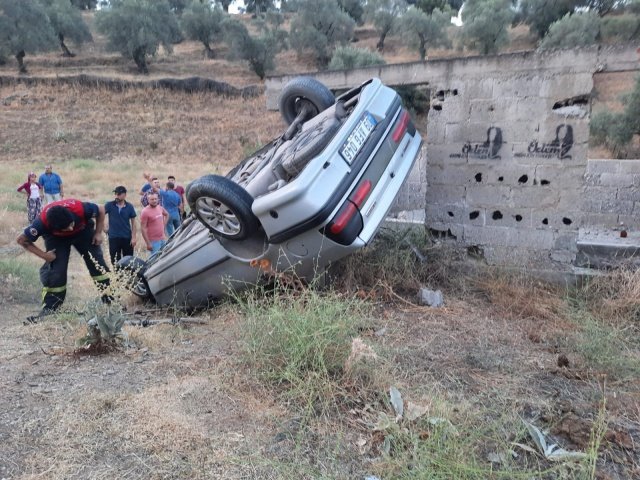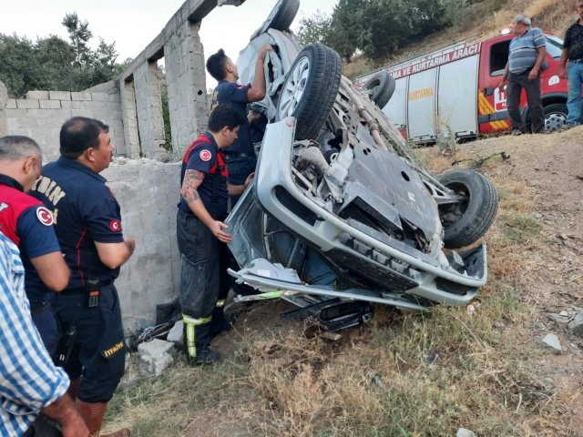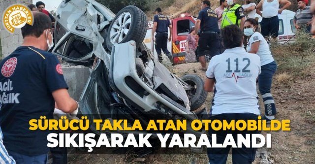 Takla atan otomobilde sıkışan sürücü yaralandı. Kazayı görenler durumu 112 Acil Çağrı Merkezi'ne bildirdi. İhbar üzerine bölgeye itfaiye, sağlık ve jandarma ekipleri sevk edildi.