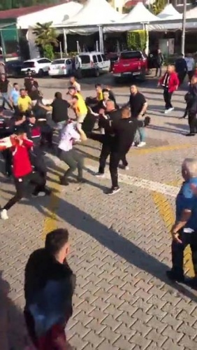 TEM Otoyolu Sakarya ve Kocaeli geçişinde bulunan dinlenme tesislerinde karşılan Kayserispor ile Sivasspor taraftarları arasında kavga çıktı.