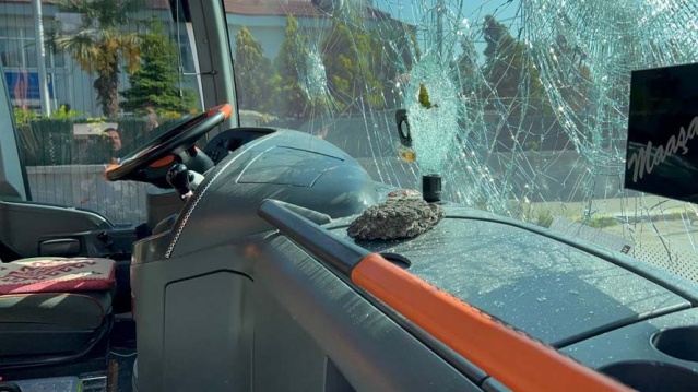 Çıkan kavgada 8 kişi yaralanırken, taraftarları taşıyan otobüsler zarar gördü. Kavga anları saniye saniye cep telefonu kamerasına yansıdı.