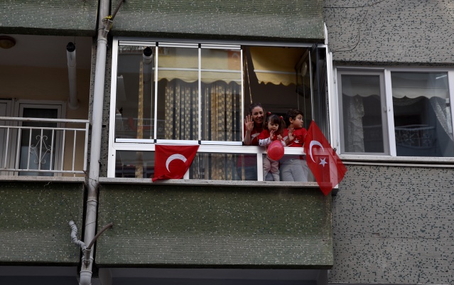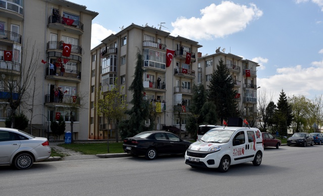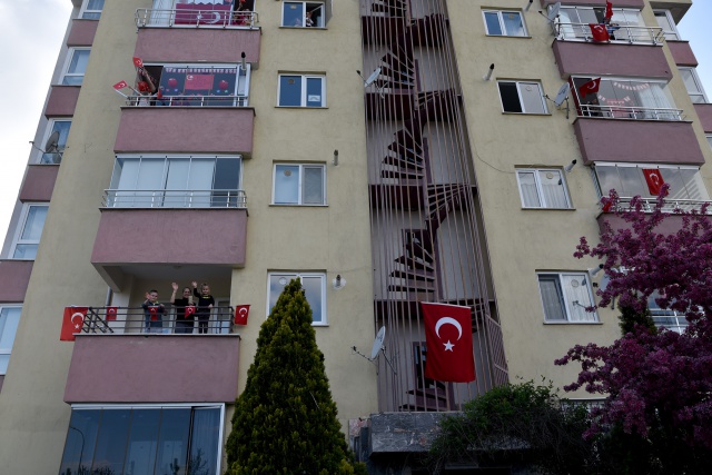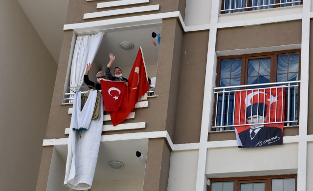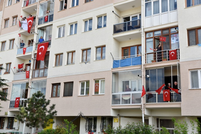 Koronavirüs tedbirleri kapsamında uygulanan sokağa çıkma yasağı nedeniyle evlerinde olan Eskişehirliler, bayramın coşkusunu pencerelere ve balkonlara çıkarak yaşadı.
