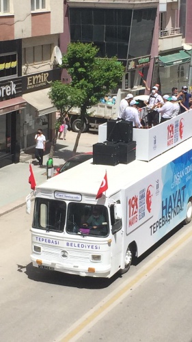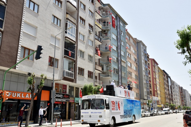 Tepebaşı belediyesi'nin hazırladığı etkinlikte balkonlu bir otobüs sokak sokak cadde cadde Tepebaşı bölgesini bando eşliğinde gezdi ve sokaklar marş sesleri ile yankılandı.