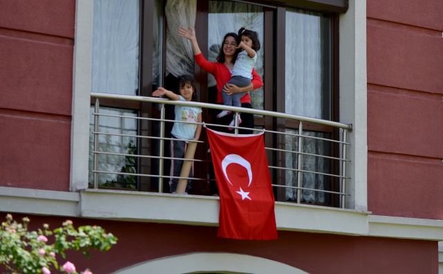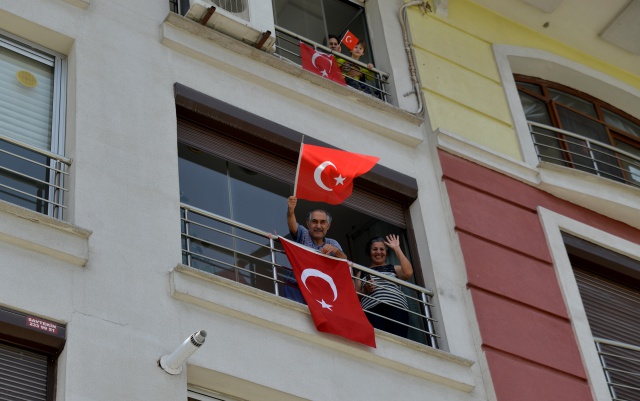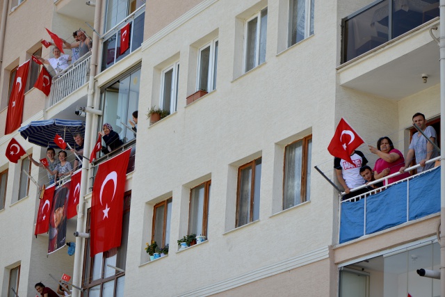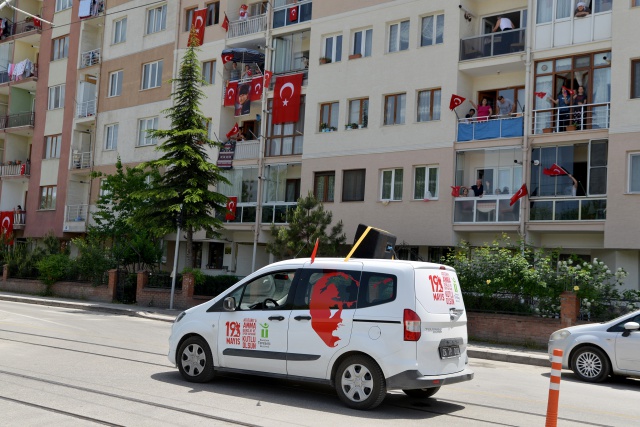 Evlerinden çıkmayan Eskişehirliler ise percere ve balkonlarda bayraklarıyla eşlik etti.
