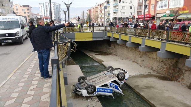 Tokat’ta trafik polis aracının dere uçması sonucu meydana gelen kazada 1 polis memuru yaralandı.