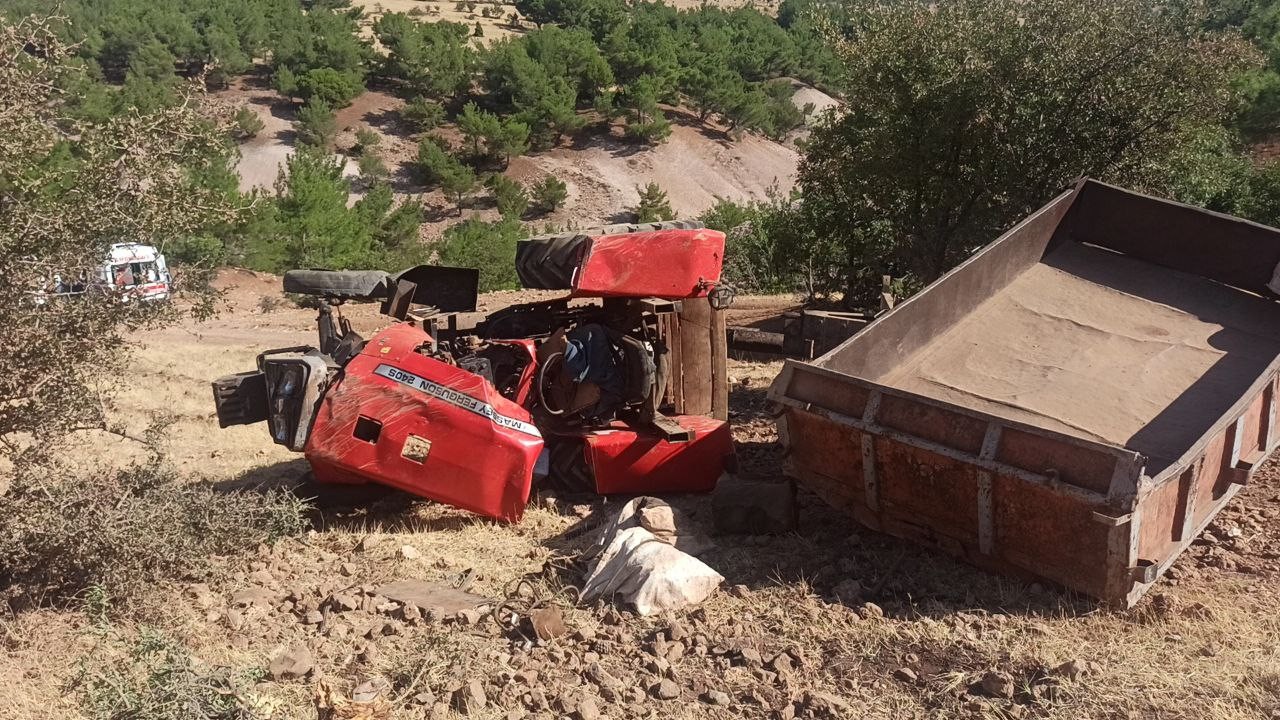 Ahmet Gündoğdu yönetimindeki 02 HU 581 plakalı traktör rampa aşağı indiği sırada traktörün freni tutmayınca sürücü kontrolü kaybetti.
