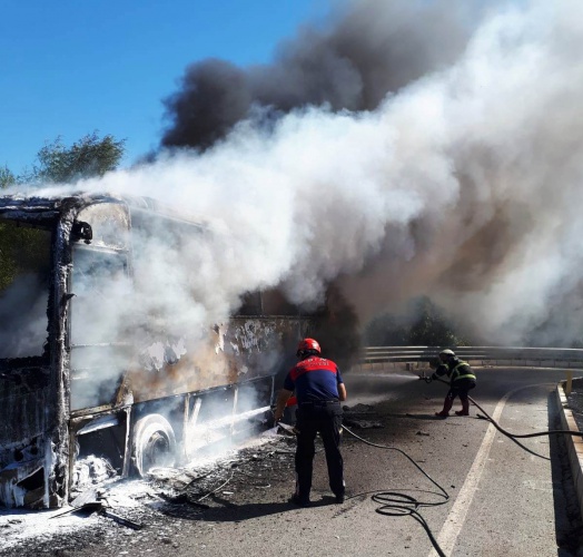 Otobüs içerisinde bulunan yolcular araçtan indirilerek, güvenli bir bölgeye götürüldü. Olay yerine gelen Aydın Büyükşehir Belediyesi İtfaiye ekipleri otobüsü saran alevlere müdahalede bulundu. İtfaiye ekipleri yaptıkları çalışmalar ile alevleri söndürürken, otobüs küle döndü.